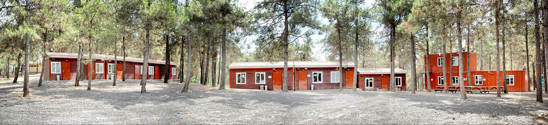 Ces 17 conteneurs conçus par combinaison ou individuel avec notre modèle de conteneur classique Hekim se diffèrent des autres avec son apparence extérieure, sa toiture et sa couleur. Nous avons utilisé un matériel de revêtement fibre-ciment de classe A1 dessin en bois compatible avec la nature pour le revêtement des façades extérieures des conteneurs. En plus de 5 WC, 3 conteneurs douches, les autres modules à un ou deux étages sont utilisés pour divers objectifs comme office, infirmerie, entrepôt.